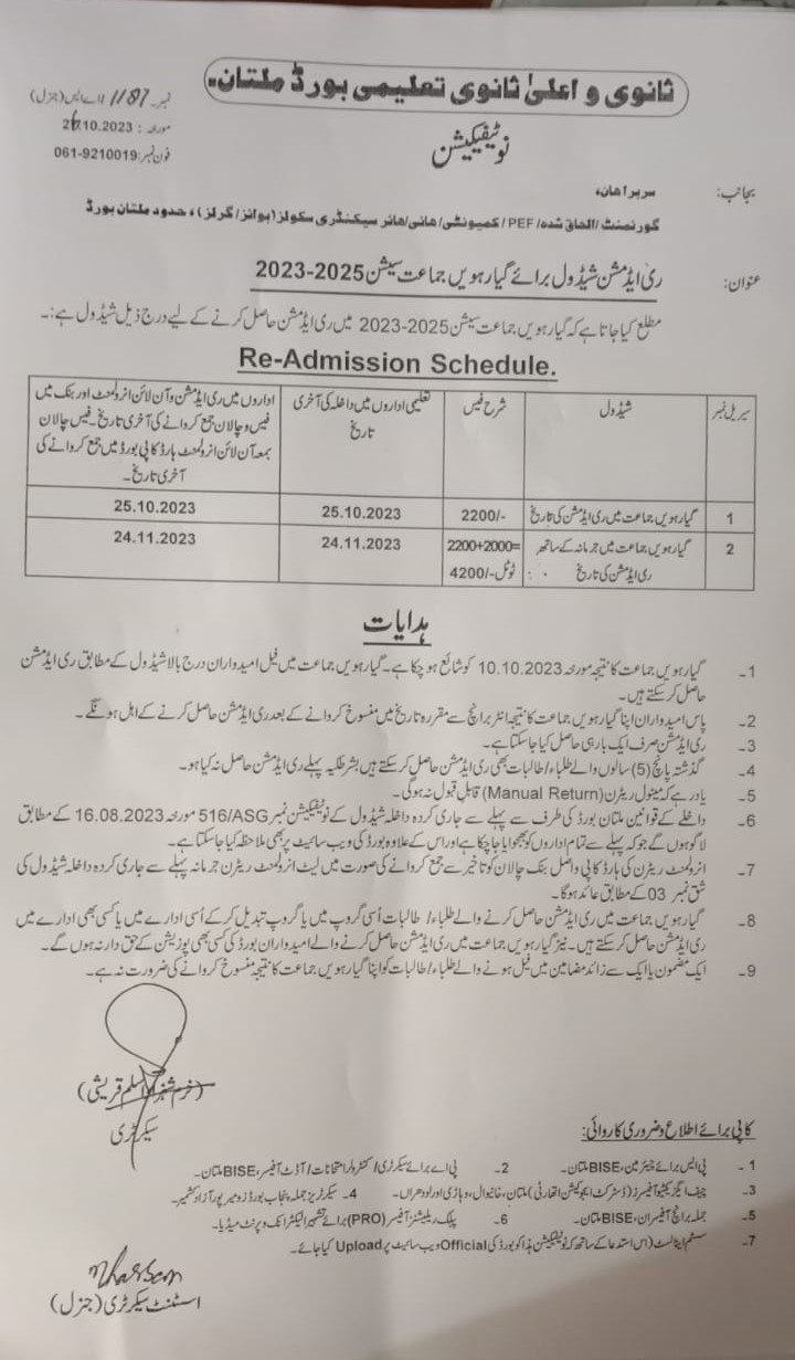 Notification for Readmission Inter Part 2