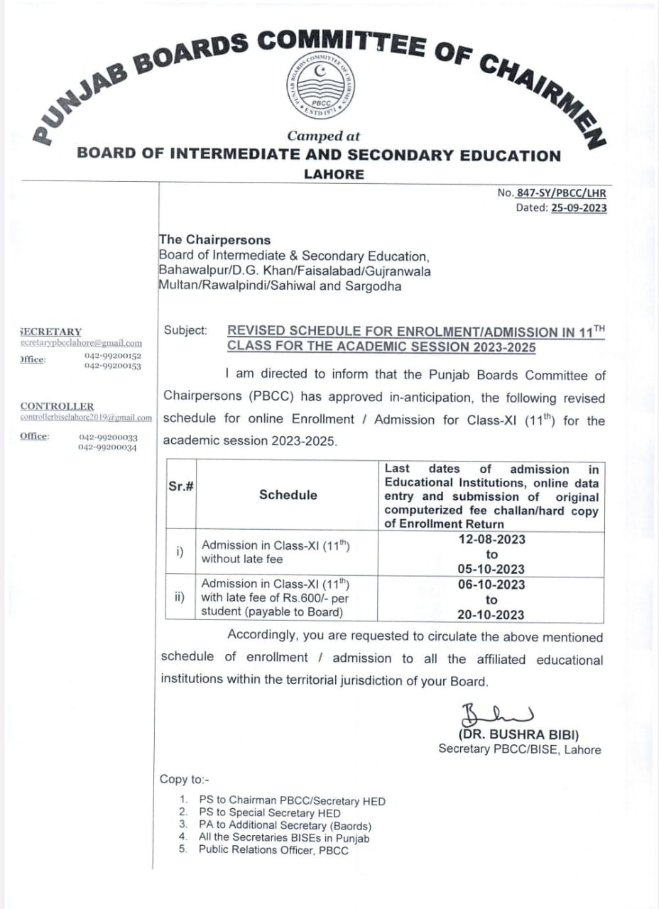 Enrollment Schedule for Intermediate Part-I (2023-2025)
